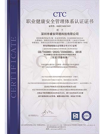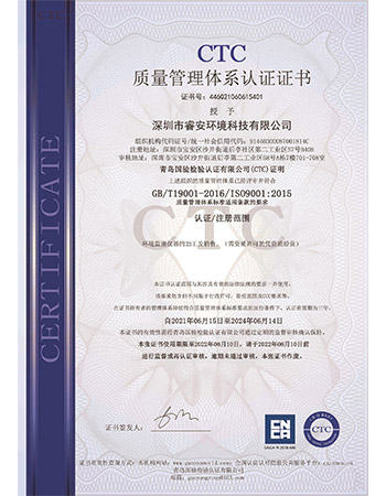 睿安環(huán)境科技 售后服務(wù)認(rèn)證證書 英文 正本