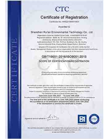 睿安環(huán)境科技 售后服務(wù)認(rèn)證證書 中文 正本